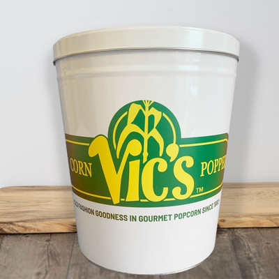 So, let the opulent beauty of our Golden Swirls Popcorn Tin shine at your next event. Order yours today and savor the delectable popcorn from Vic's Corn Popper as you indulge in a snack experience that is both sophisticated and flavorful.
