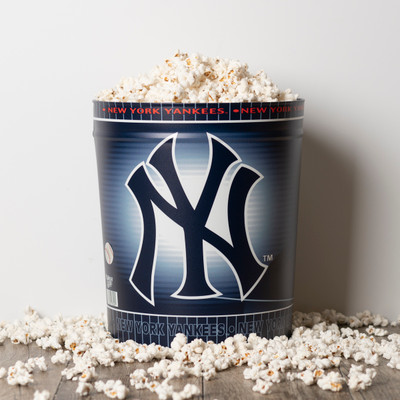 Emblazoned with the iconic New York Yankees logo and pinstripes, these popcorn tins capture the essence of the legendary franchise. Whether you're hosting a watch party at home or gathering with fellow Yankees fans, these tins bring a touch of Yankee Stadium right to your living room.